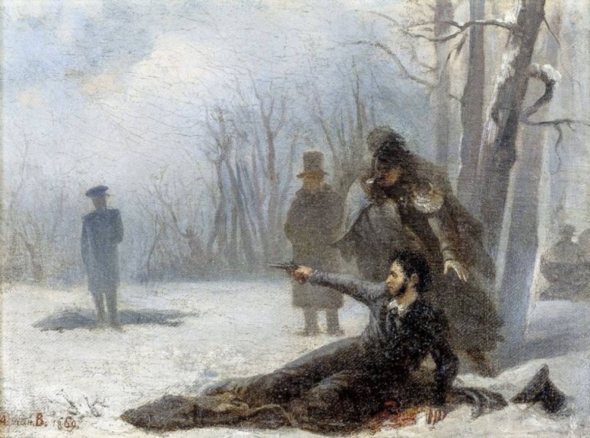 Александр Сергеевич Пушкин умер от ранения, полученного на дуэли у Чёрной речки. Его противник — Жорж Дантес, французский кавалергард, настойчиво ухаживавший за женой поэта, Натальей Николаевной.