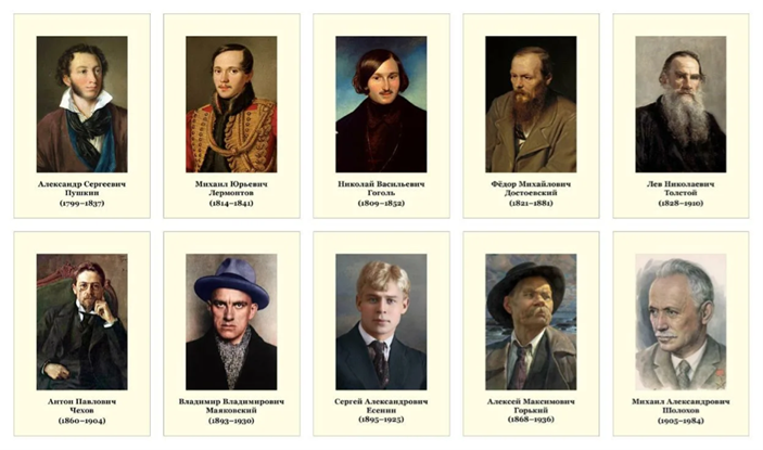 Золотой и Серебряный век дали миру гениев: А. Пушкин, Ф. Достоевский, Л. Толстой, А. Чехов, Н. Гоголь. Глубина психологизма, «русская идея», поиск правды и смысла жизни.