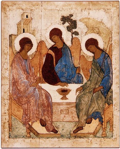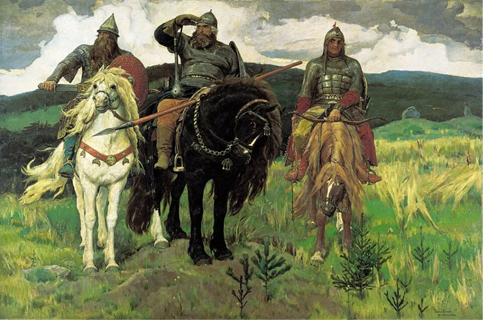 Иконы Андрея Рублёва, передвижники (И. Репин, В. Суриков), русский авангард (К. Малевич, В. Кандинский).